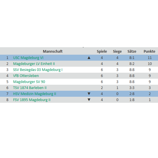 Damit ist es in der Tabelle sehr eng. Platz 3 bis 5 sind alle Punkt und Satzgleich.